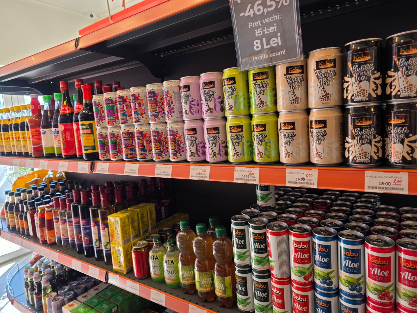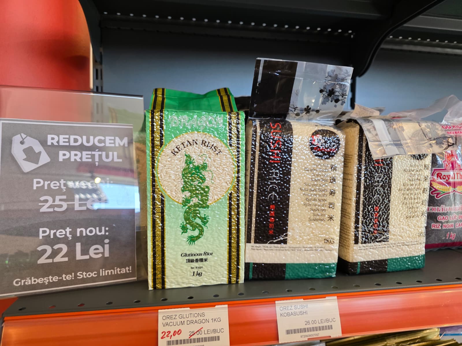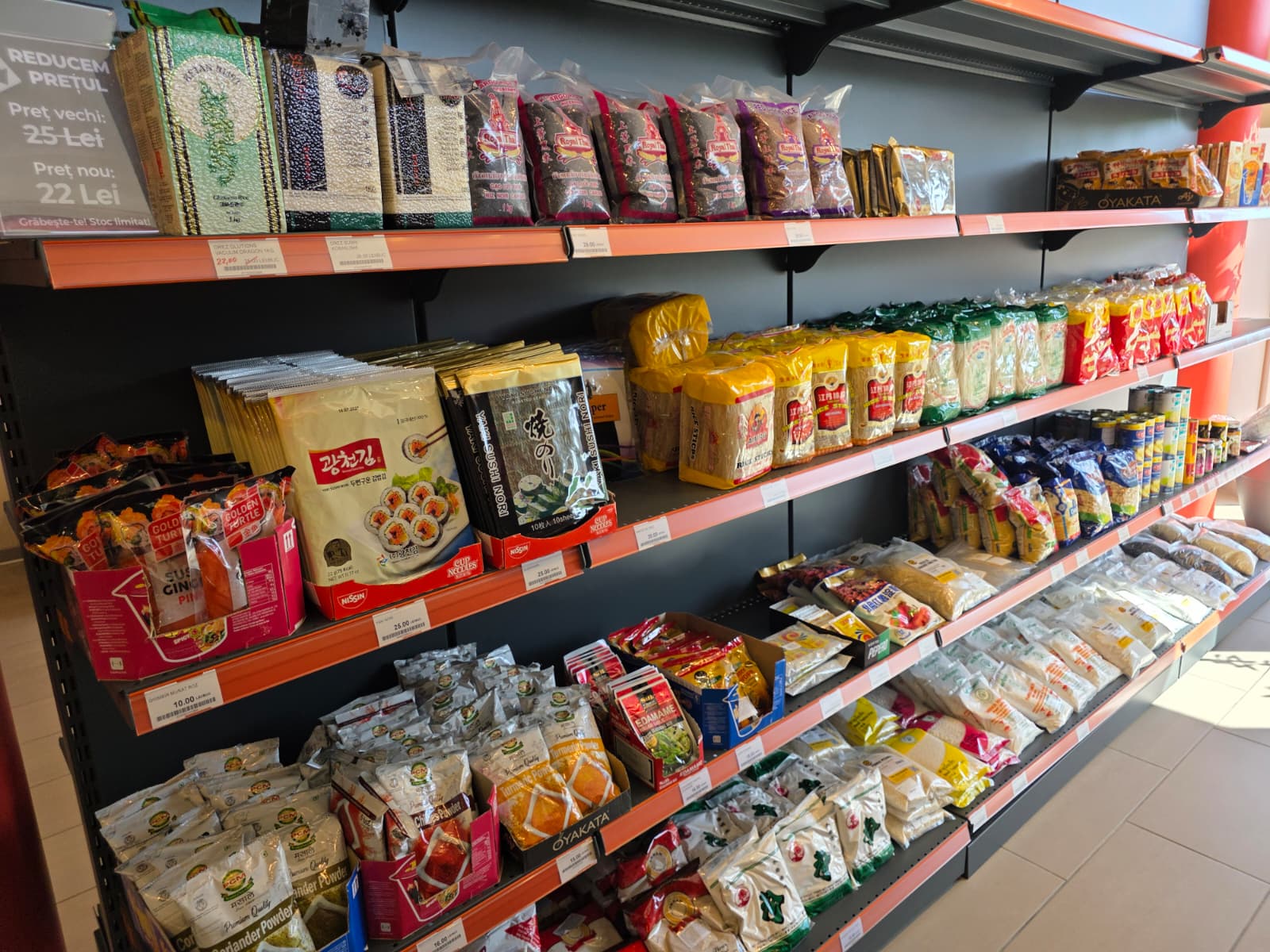 De pe rafturi nu lipsește nici orezul special pentru sushi, alături de alge și oțet de orez – tot ce aveți nevoie pentru a deveni niște maeștri sushi chiar la voi acasă.