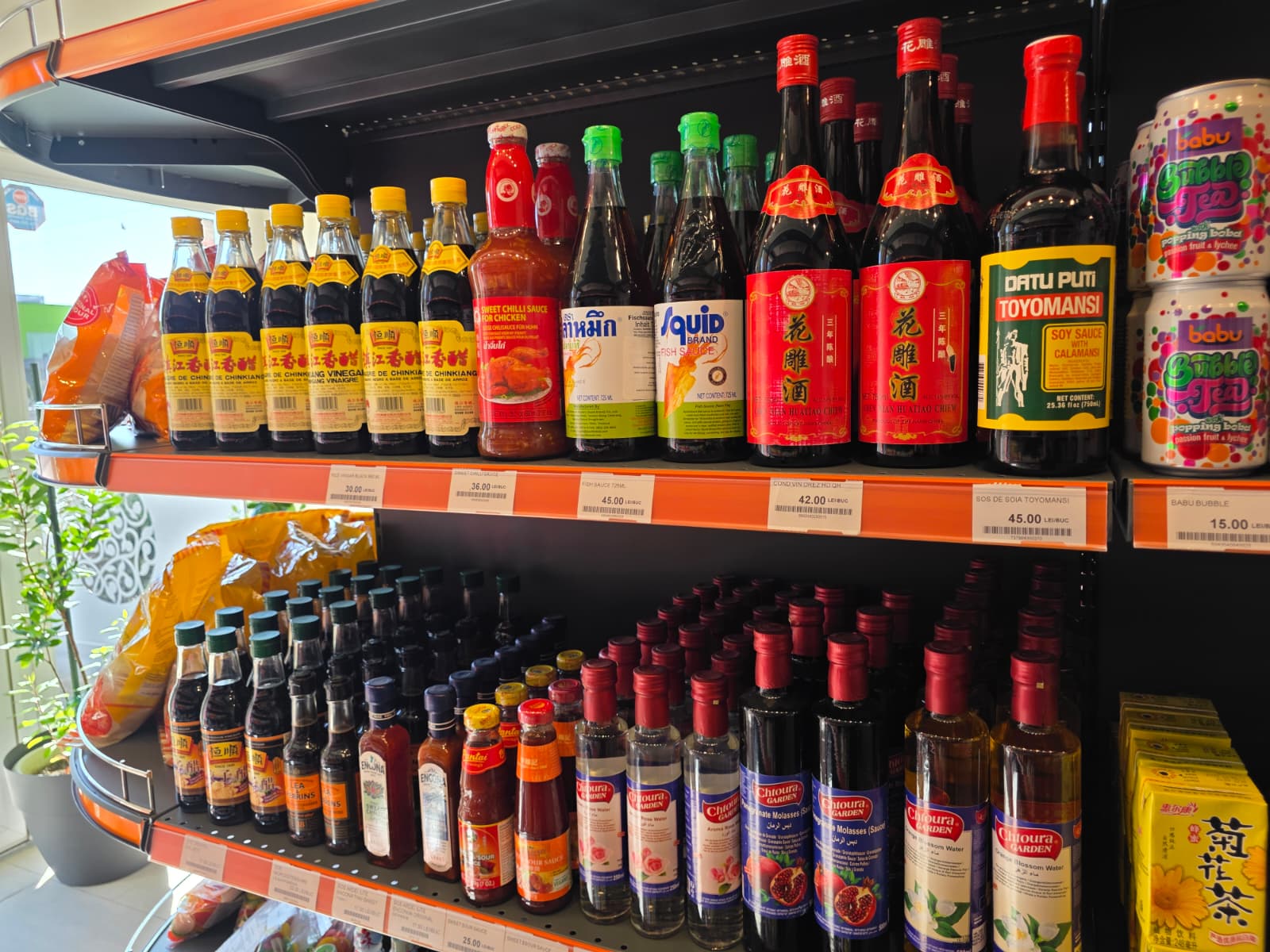 Tot la Queen of Asia veți găsi sosuri și uleiuri asiatice cu arome intense: sosul de soya, sosul Worcestershire, uleiul de susan, sosurile de mango – sub formă de chutney sau pickle, piureul de ghimbir și sosurile picante, care adaugă un plus de personalitate fiecărei mese.