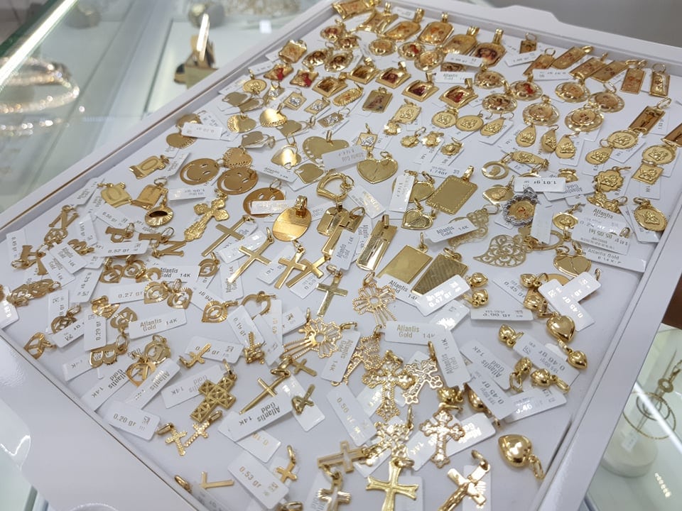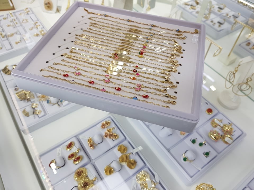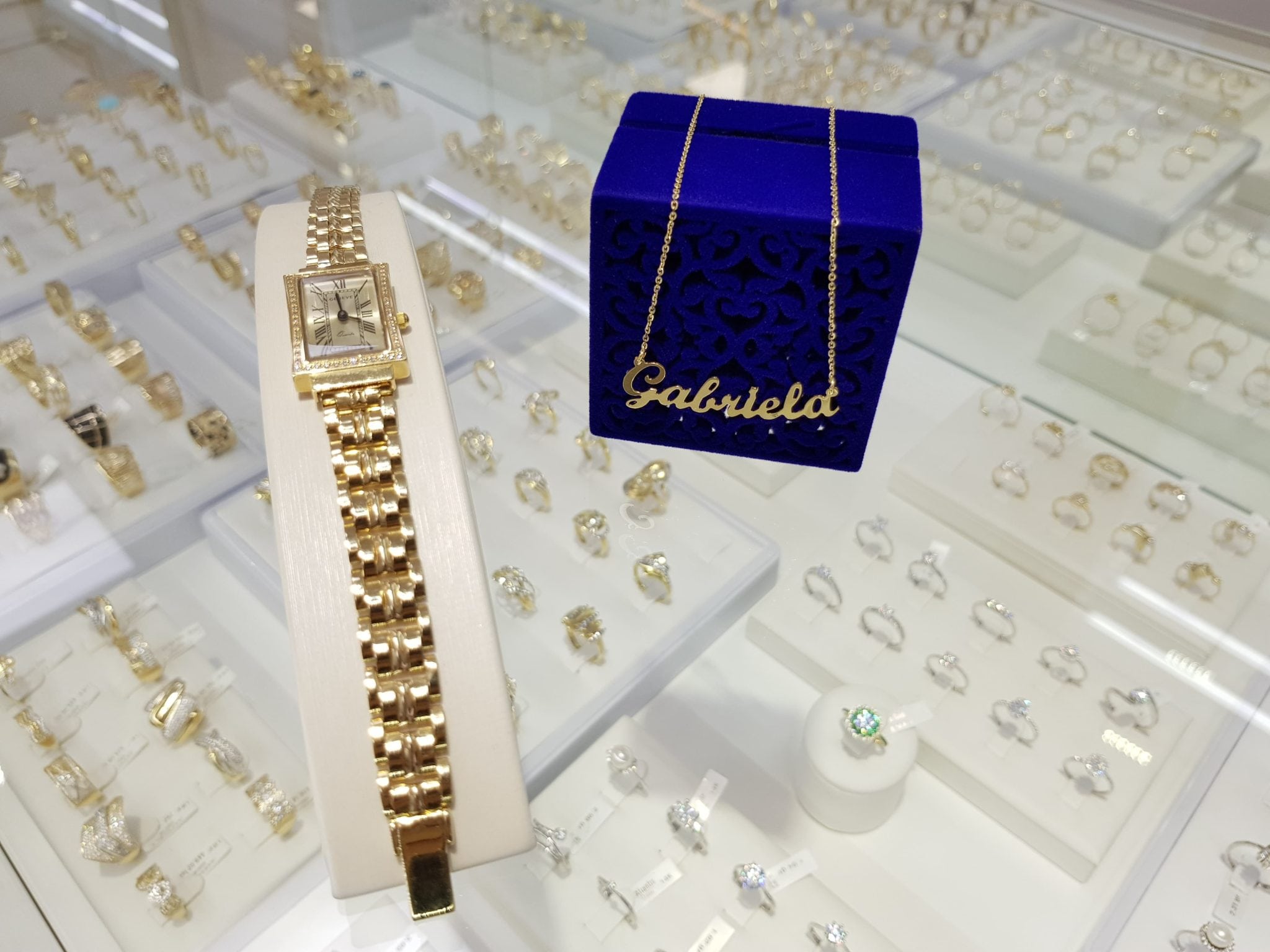 În rafturi sunt sute, poate mii de modele de bijuterii din aur, lucrări clasice, care se caută tot timpul, bijuterii aflate la modă sau adevărate opere de artă din aur alb, galben, roz și chiar și ceasuri din aur. Cerceluși, brățări sau lănțișoare fine pentru copii, butoni din aur pentru cămașa unui domn, inele superbe cu pietre prețioase și chiar diamante, care pot impresiona orice doamnă, oricât de pretențioasă ar fi.