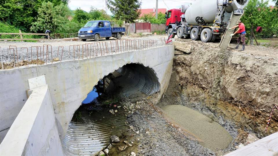 „În aceste zile se lucrează la finalizarea structurii de rezistență a noului pod rutier de peste pârâul Ghinzii”, transmite viceprimarul Cristian Niculae.