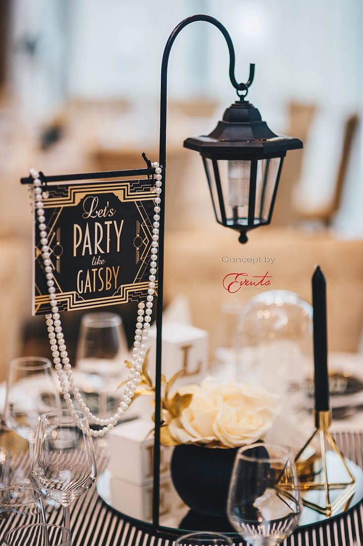 - The Great Gatsby – A fost o nuntă ca-n filme de care toți invitații își vor aminti mult timp. Mirii le-au lăsat să-și facă de cap pe fetele de la Events and the city, care au ales o temă cu elegantă, în care micile detalii au făcut diferența între o petrecere reușită si una cu adevărat extraordinara. Sloganul ales a fost „A little party never killed nobody”, iar la final a ieșit un film care a rămas în mintea și în sufletul tuturor, greu de uitat.