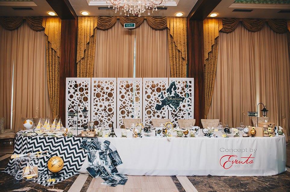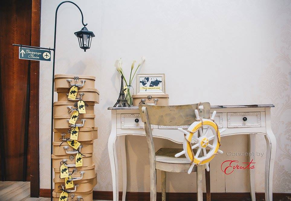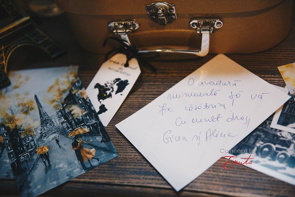 - Let’s go – Și-au dorit un decor care să spună povestea presărată cu călătorii a vieții lor. Așa s-au cunoscut și așa au vrut să le fie și povestea din ziua nunții. Este vorba de un scoțian și o romancă, dor și drag de ducă (cum altfel să fie când el este capitan de vas, iar ea marinar?!), cu invitați din toate colțurile lumii, cu tot mapamondul la picioare. A fost veselie mare, mulți prieteni alături și mână liberă la creație pentru fetele de la Events and the City.