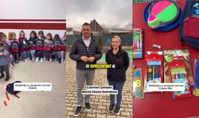 Organizația World Vision România, în parteneriat cu Fundația OMV Petrom, face cadouri copiilor de grădiniță. E vorba de ghiozdănele complet echipate.