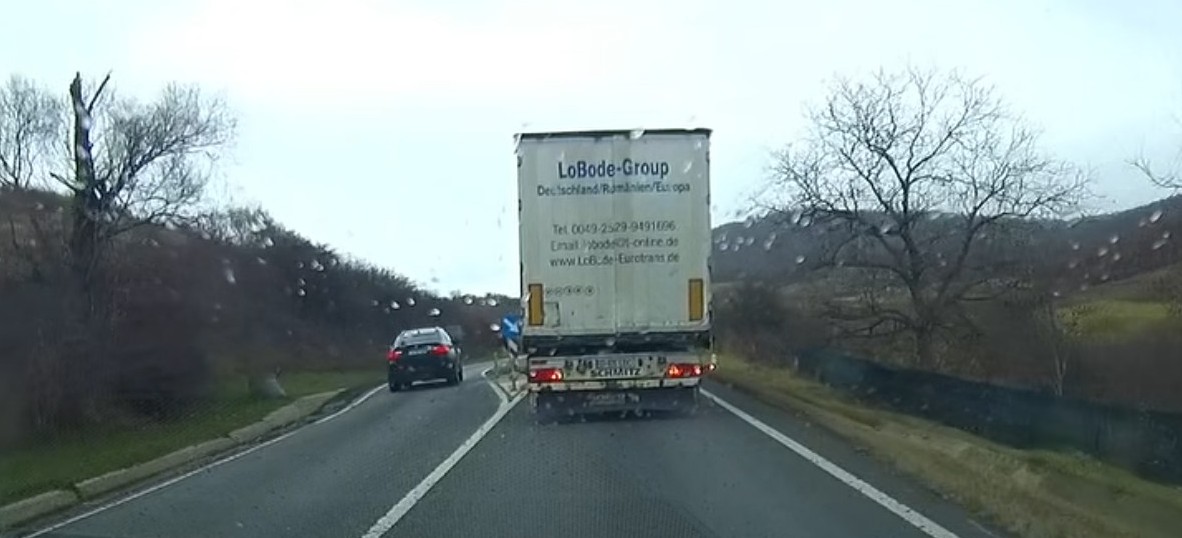 Un video postat online arată o depășire inconștientă făcută de un șofer, ieri. Acesta se angrenează în depășirea unei mașini mici și a unui TIR.