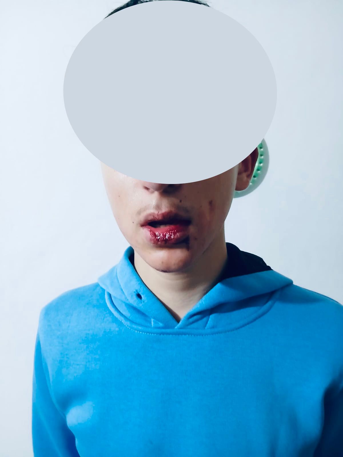 Adolescentul a ajuns la spital, a fost externat, însă a doua zi tatăl lui l-a adus din nou la spital, după ce starea sa s-a agravat și a rămas internat. Băiatul avea dureri serioase în zona capului, amețeli, nu putea sta în picioare și avusese mai multe episoade de vomă.