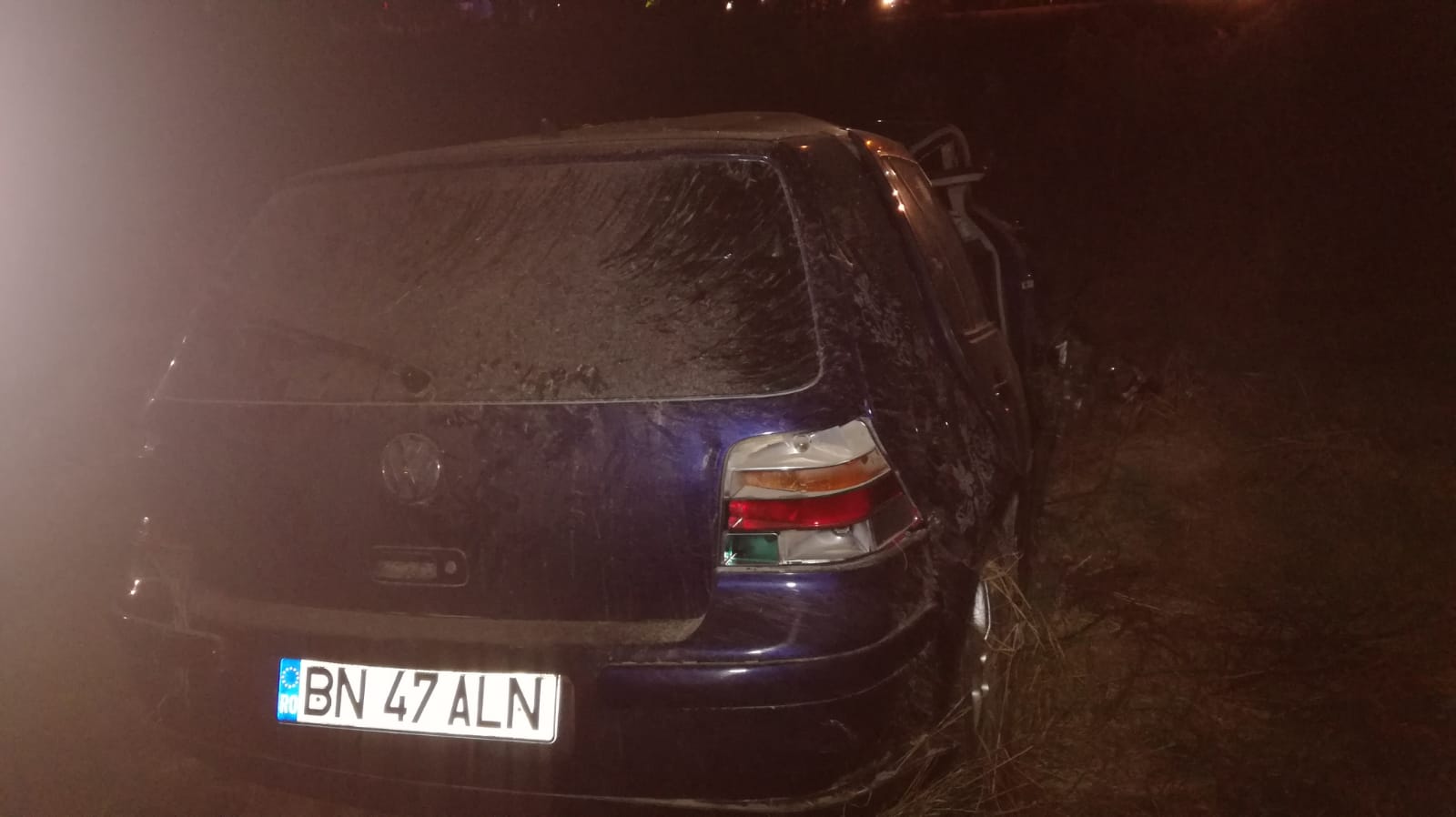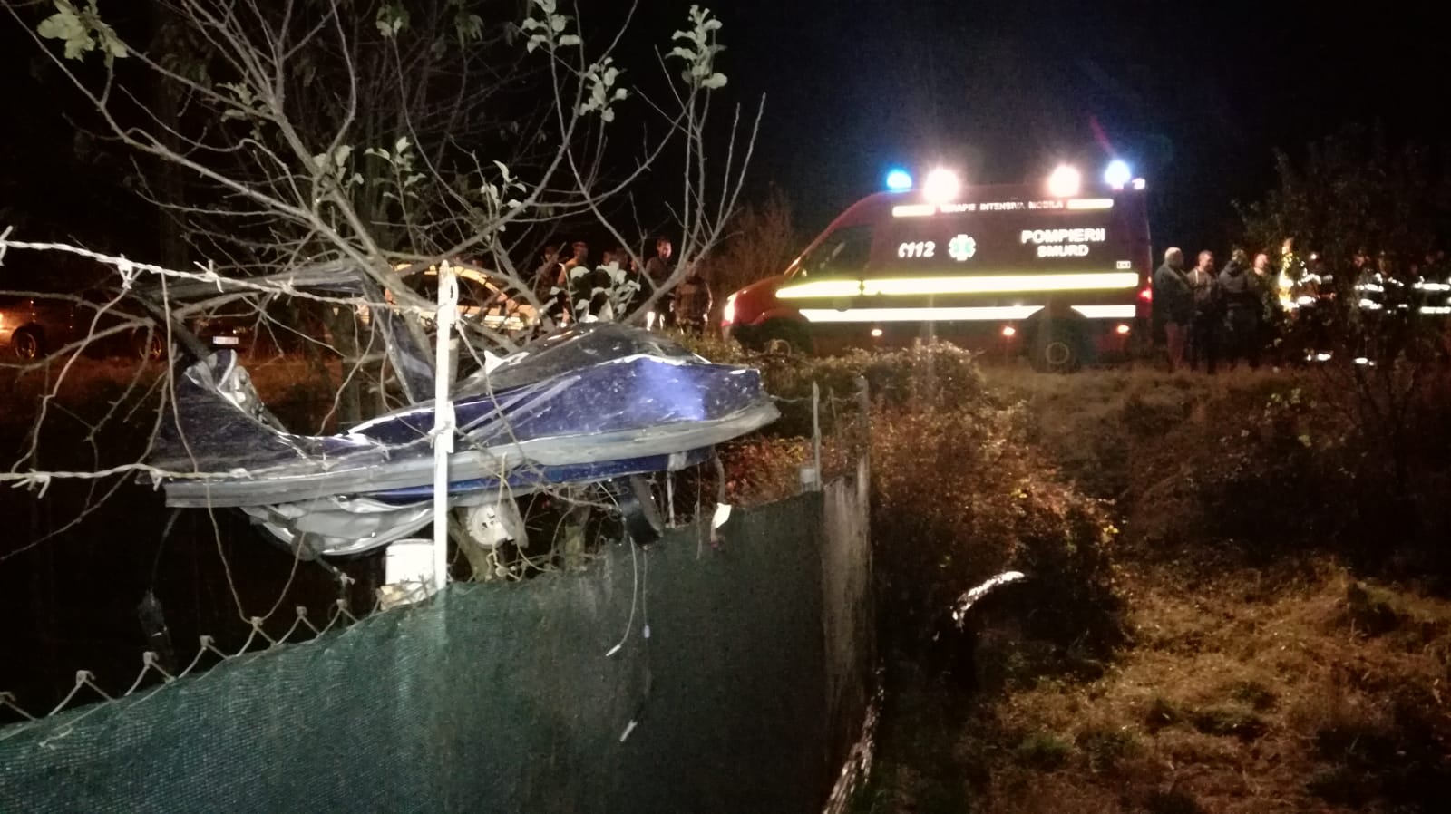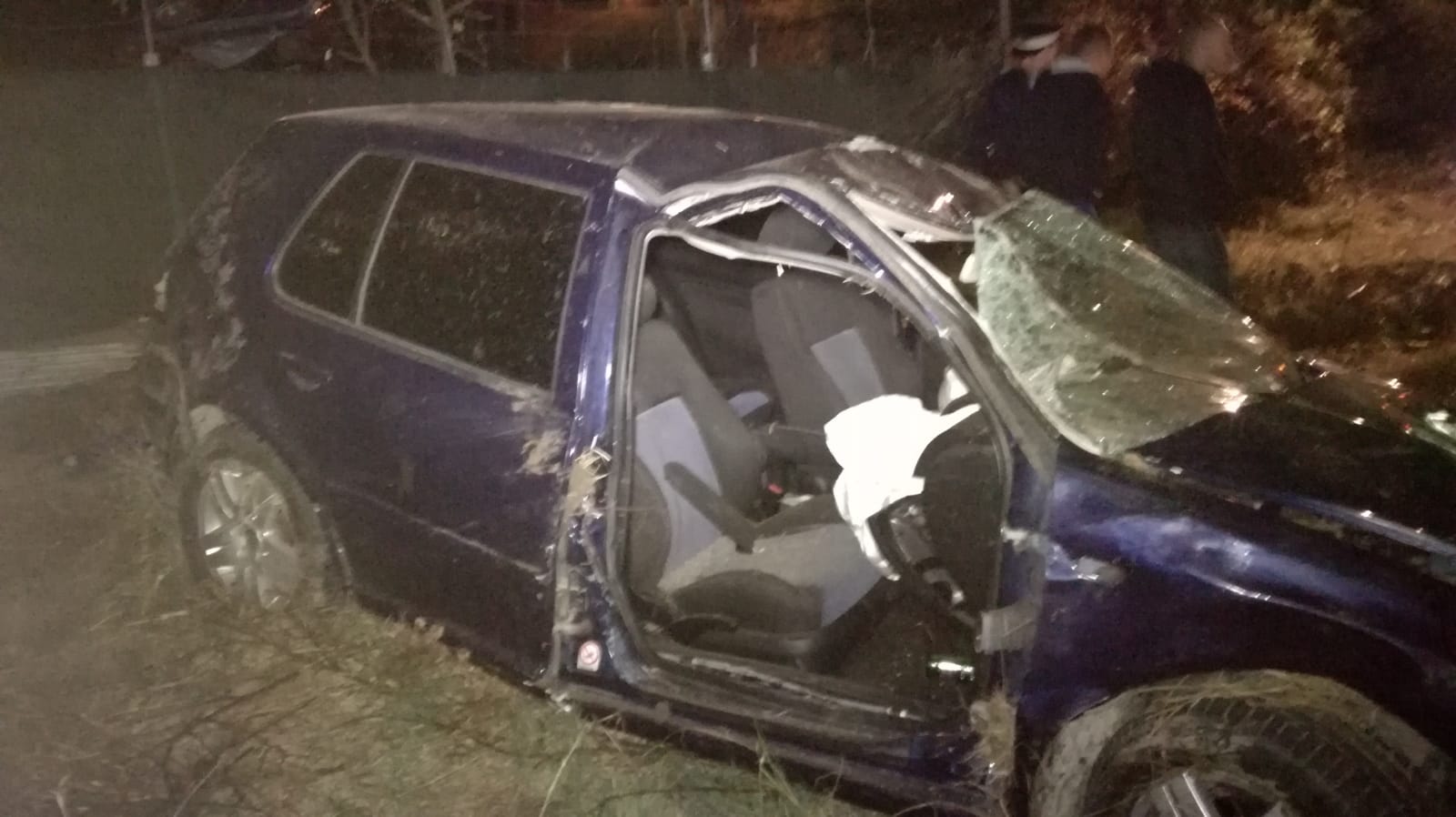 Autoturismul a ajuns pe un câmp, unde s-a răsturnat. Impactul a fost atât de puternic, încât una dintre portierele autoturismului a fost smulsă și a rămas agățată într-un gard.