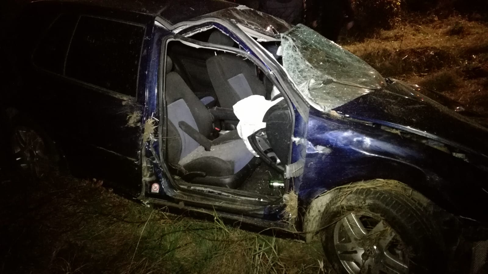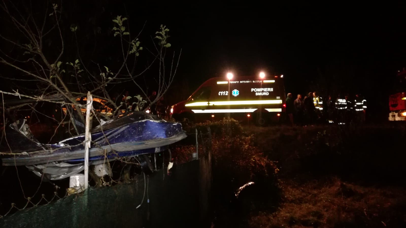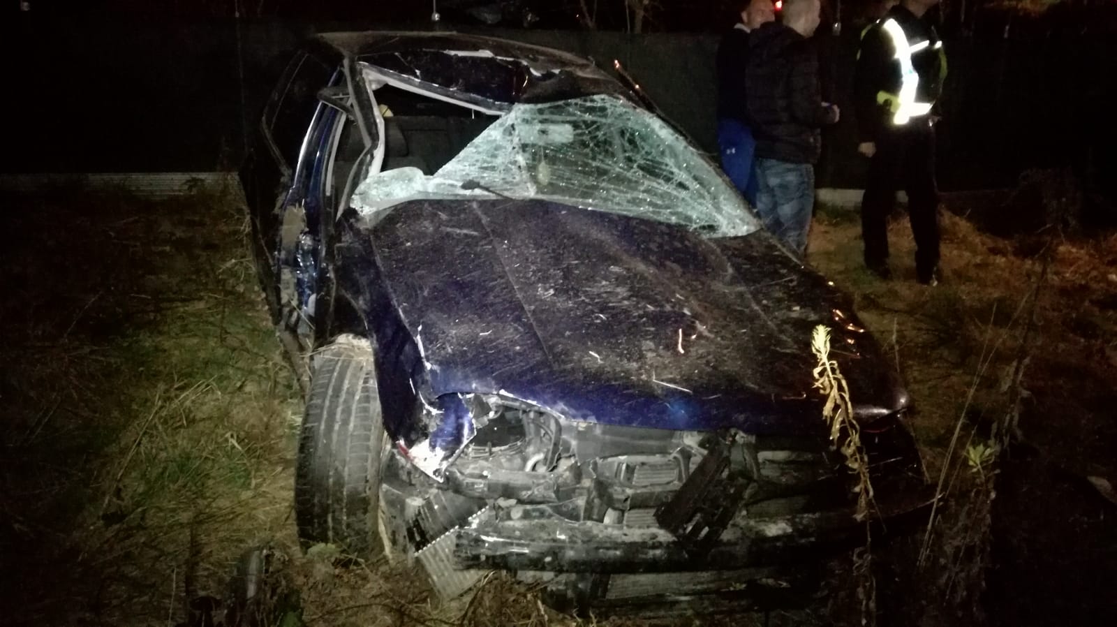 Autoturismul a ajuns pe un câmp, unde s-a răsturnat. Impactul a fost atât de puternic, încât una dintre portierele autoturismului a fost smulsă și a rămas agățată într-un gard.