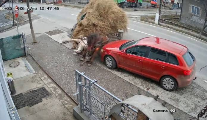 Un grav accident a avut loc ieri, în Bistrița-Bârgăului, cauzat de un căruțaș chiar cu atelajul hipo plin cu fân. Acesta a ieșit în strada principală de pe o uliță fără să se asigure și a lovit o mașină, iar mai apoi a ricoșat într-o altă mașină parcată. Camerele de supraveghere ale magazinului lângă care s-a petrecut accidentul au surprins totul.