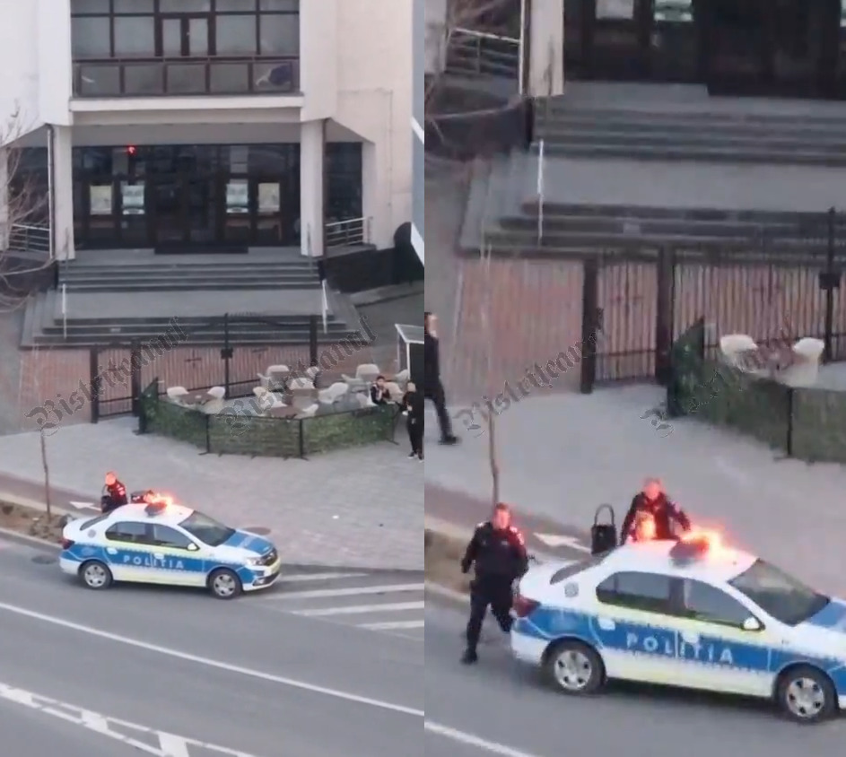 Scandal aseară în fața Complexului Winmarkt din Bistrița. Un cititor Bistrițeanul.ro a surprins momentul când o persoană încătușată, a fost ridicată de pe trotuar și băgată de polițiști în mașină. A surprins în video partea finală a intervenției.