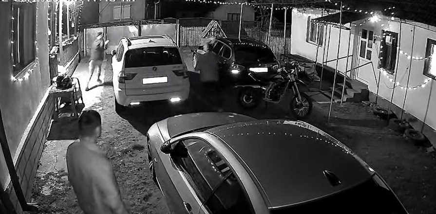 Agresorul a părăsit la un moment dat locuința, dar a revenit în câteva minute înarmat cu o secure. Se pare că tot el ar fi spart două autoturisme aparținând invitaților aflați la petrecere, provocând distrugeri semnificative. Proprietarul a încercat să se apere cu o bâtă, însă, conform imaginilor video existente, a fost nevoit să o arunce și să fugă pentru a-și salva viața, fiind urmărit de agresor cu securea – mai relatează N1 TV.