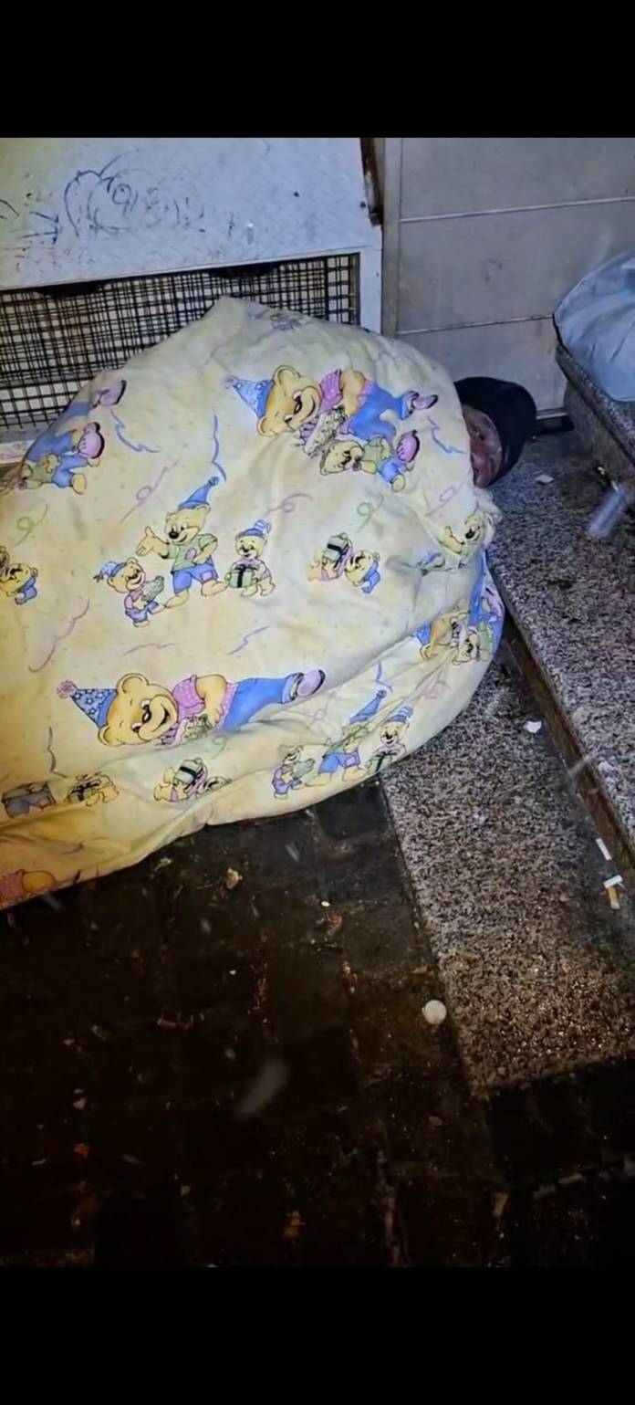 La -13 grade, un bărbat a fost găsit de polițiștii locali dormind pe niște scări, în parcul mare, încercând să se încălzească doar cu o pătură.