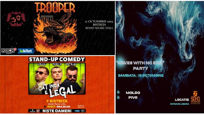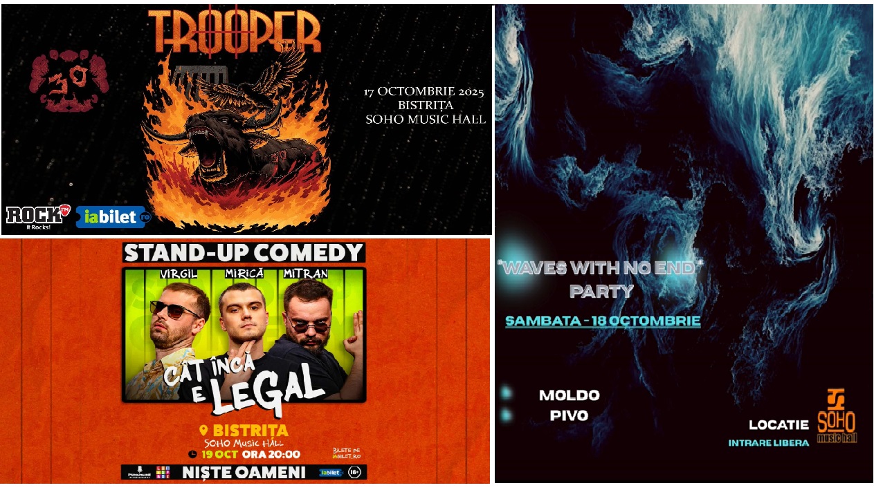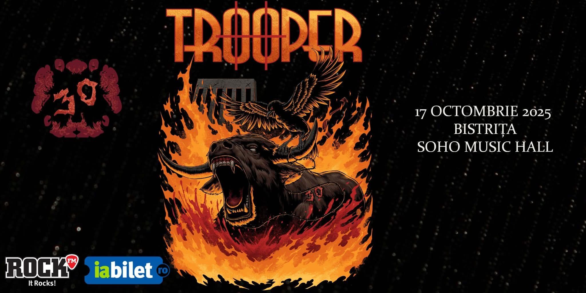 Vineri, 17 octombrie, în Soho Music Hall, muzicienii de la TROOPER aniversează 30 de ani de activitate. Se anunță un super concert LIVE pe care nu aveți voie să-l ratați! Sâmbătă – o petrecere de pomină cu MOLDO & PIVO, iar duminică – stand-up comedy!