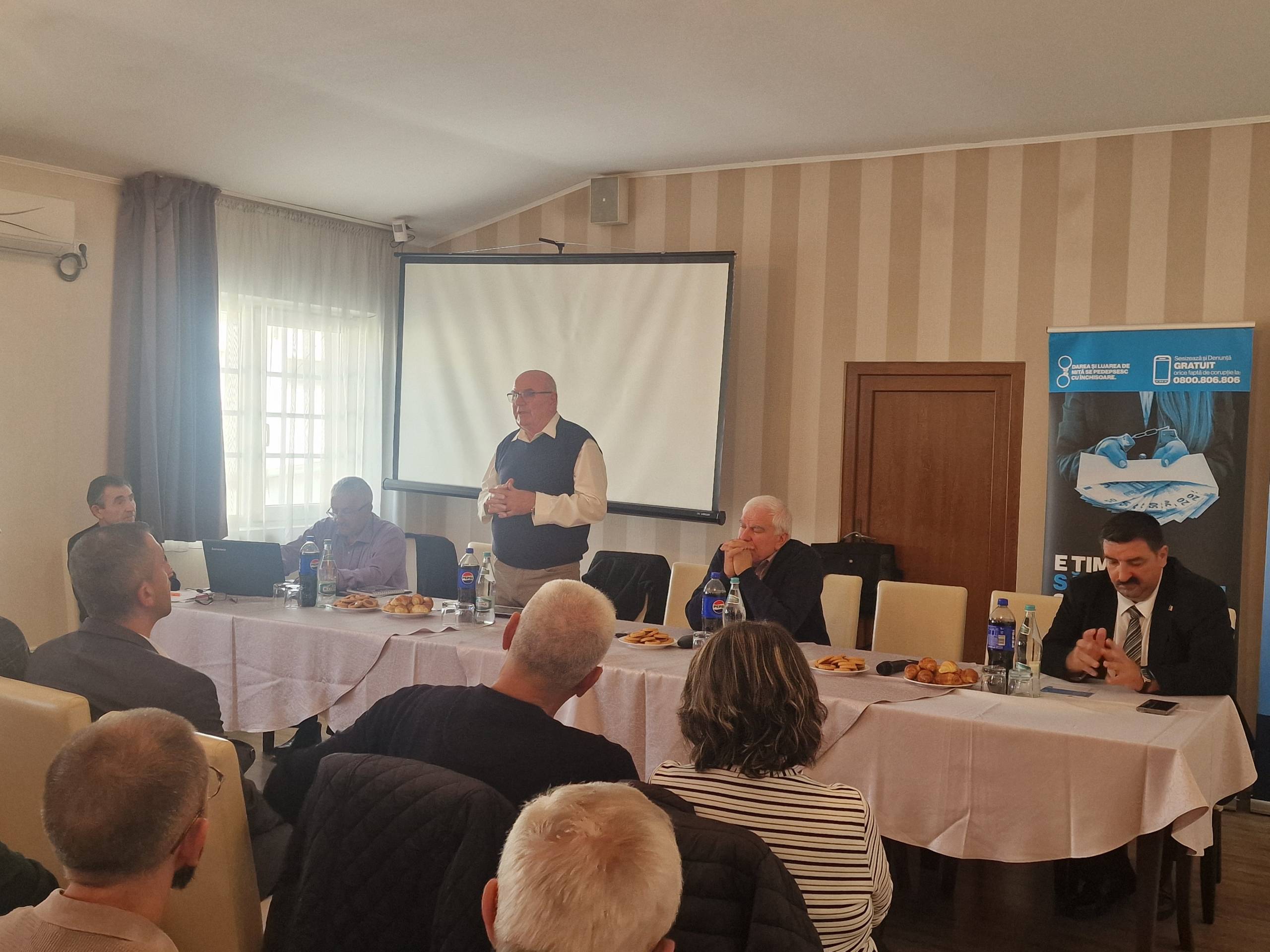 Astăzi, la Bistrița, au fost prezenți participanți din 17 județe, plus din județul nostru. Ca invitați pentru a discuta problemele existente au fost și subcomisarul Cristian Pop, subcomisar Bogdan Baciu (DGA BN) și comisar șef Făgăraș Ionel (servicu anticoruptie).