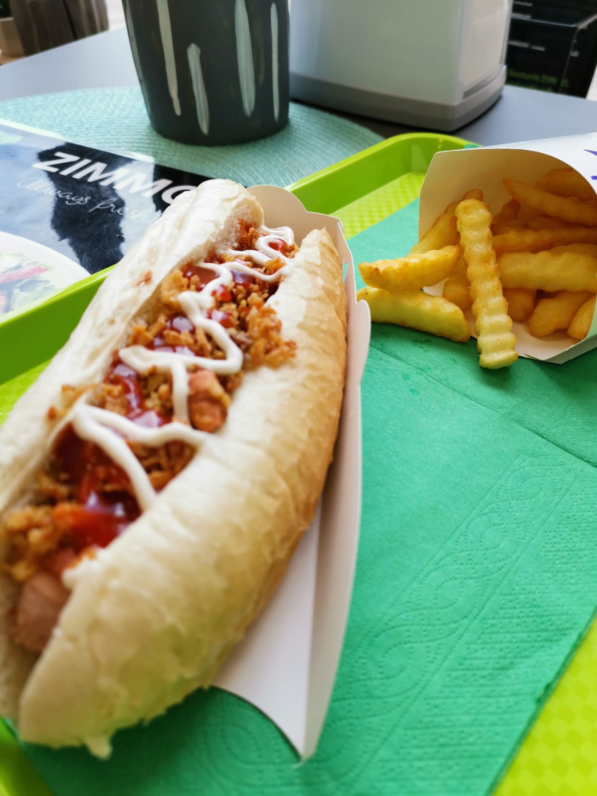 Mai mult, Zimmo surprinde cu un meniu american ce cucerește papilele gustative cu gustul autentic de peste ocean. Meniul cuprinde hot-dog-ul cu ceapă caramelizată, condimentul unic ce-i oferă gustul autentic, cartofi prăjiți condimentați cu o combinație de sare și condimente unice, care le dau un gust exploziv, și o doză de suc.